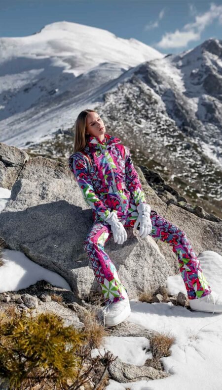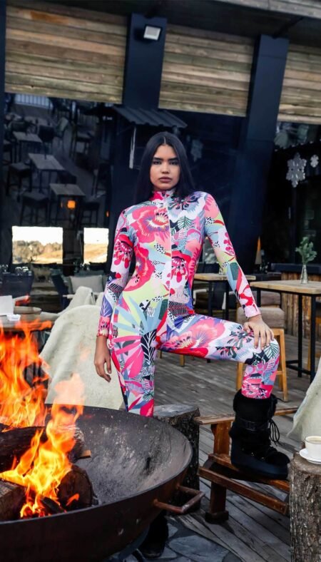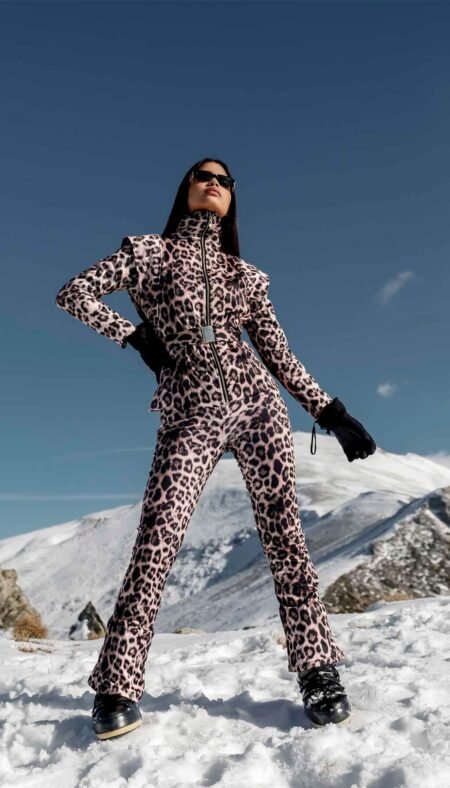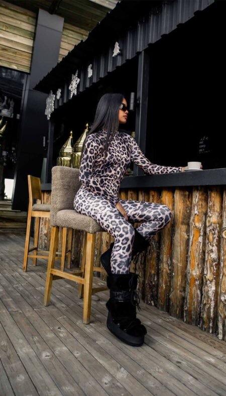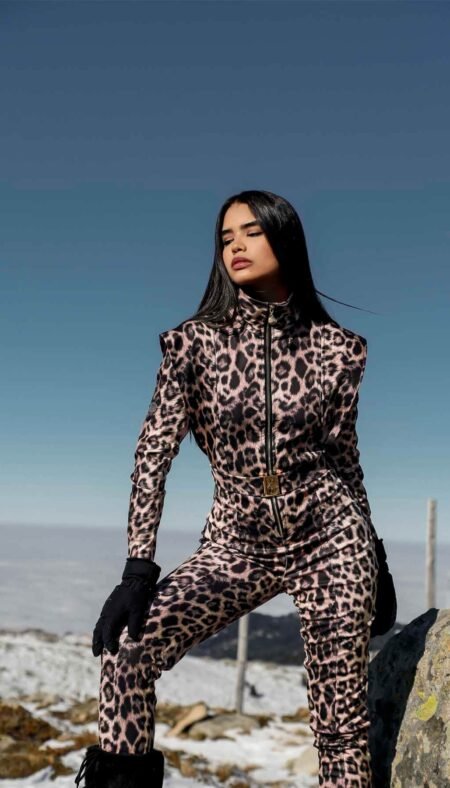 - 34 % Off895.00 $Original price was: 895.00 $.595.00 $Current price is: 595.00 $.Stand-up collar, waterproof covered metal zipper, leopard pattern ski suit
