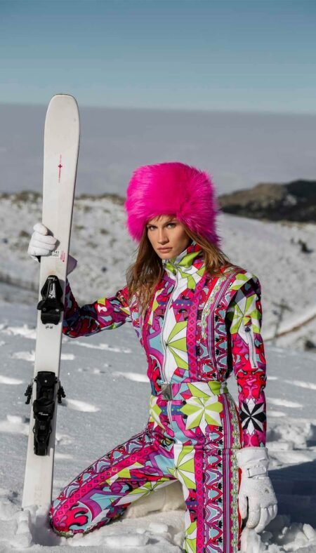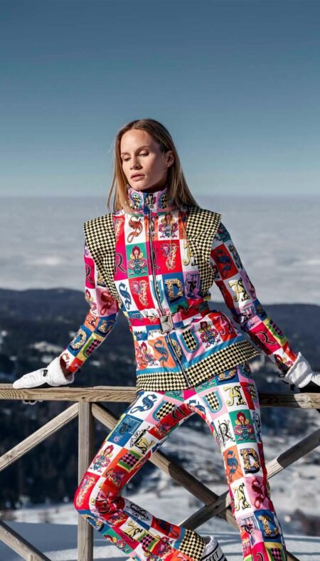 - 34 % Off895.00 $Original price was: 895.00 $.595.00 $Current price is: 595.00 $.Designer ski jacket with stand-up collar, waterproof lining, metal zipper with waterproof cover, leopar pattern. Leopar patterned, waterproof covered metal zipper, metal logo button, designer ski trousers.
