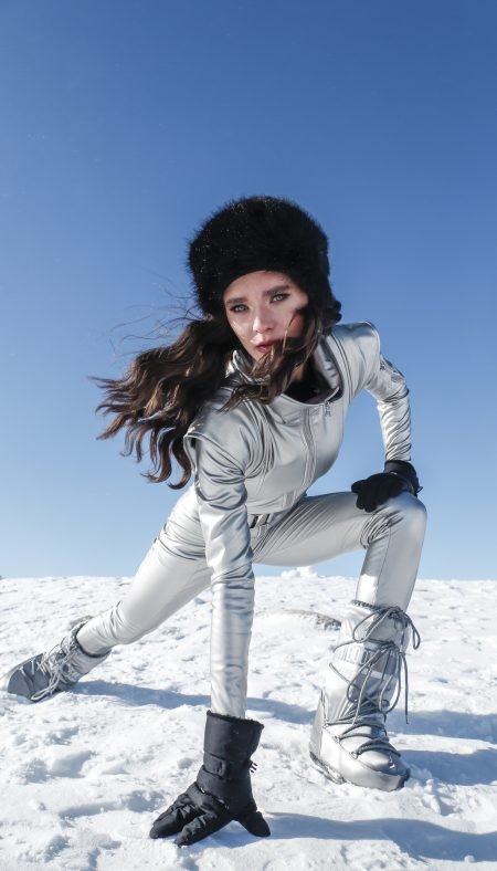 - 30 % Off995.00 $Original price was: 995.00 $.695.00 $Current price is: 695.00 $.Stand-up collar, waterproof covered metal zipper, metallic silver color, ski suit