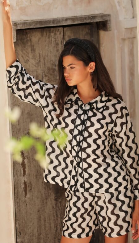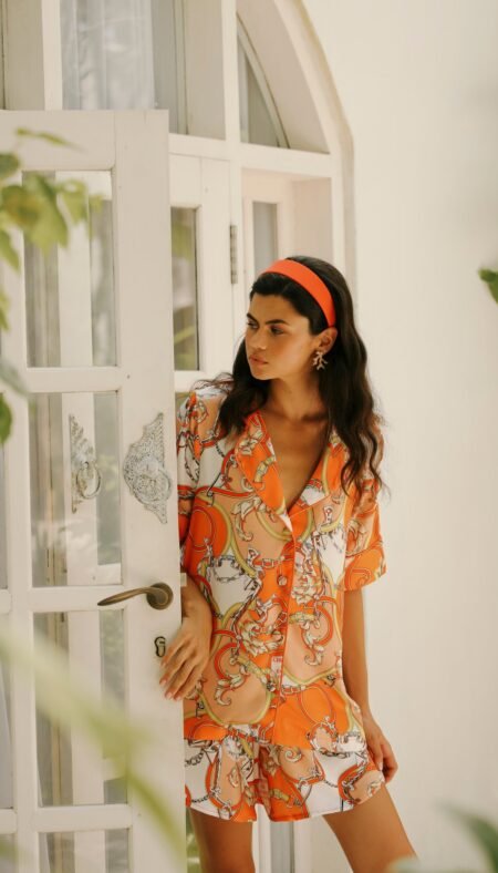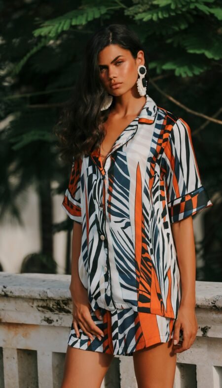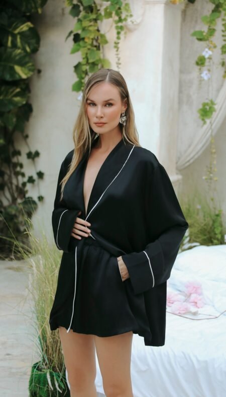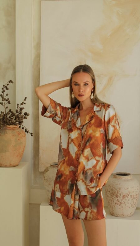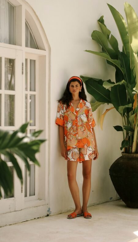 New190.00 $AURELIE ORANGE SHORT SET – SILK SATIN ORANGE Product Features: Model: Short Set Color: Orange Fabric: Silk Satin Location: Bali Details: Piped silk satin Elastic waistband and side–pocketed shorts Piped short–sleeve shirt top Lightweight, elegant, and comfortable fit Fabric Information: Silk satin fabric is breathable, lightweight, and natural. It prevents […]