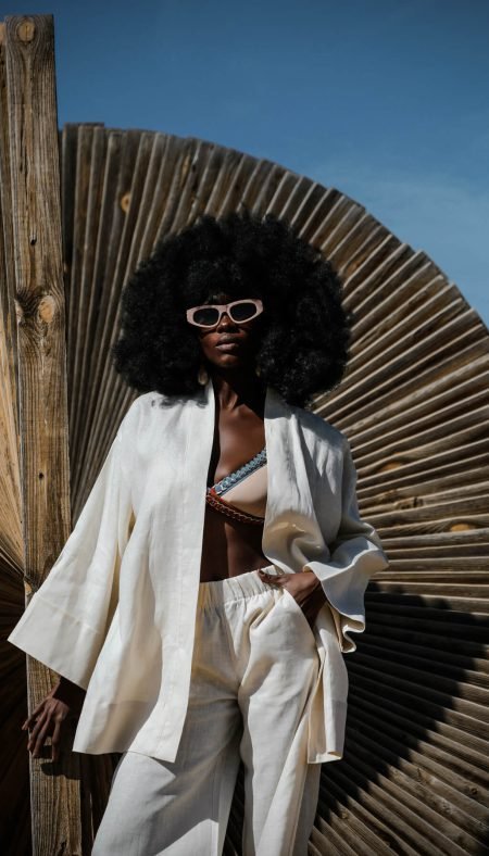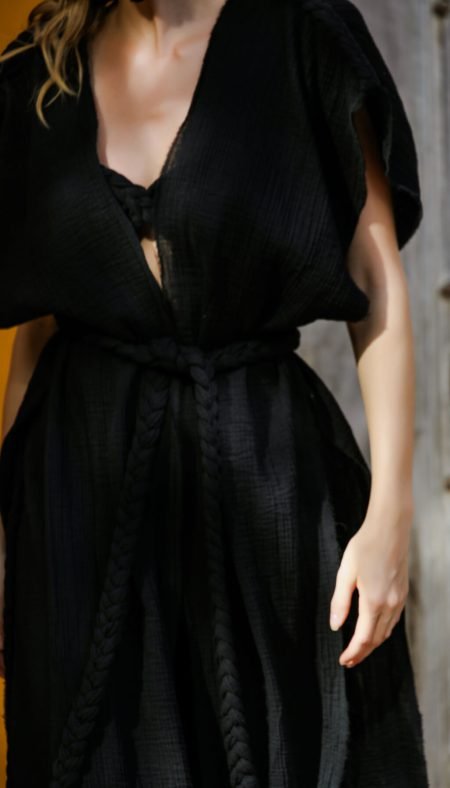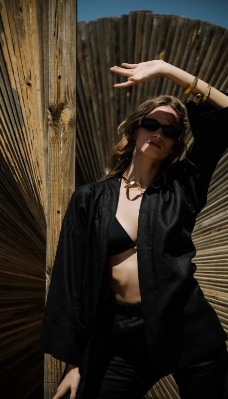 270.00 $Experience the coolness and comfort of Marrakech’s hot days with the relaxed and stylish piece of the ELA’F SS24 Soleil de Marrakech Collection, the La Pause Short Kimono. The natural texture of 100% linen fabric and the elegance of black come together in the La Pause Short Kimono, making it a must-have for the summer months.