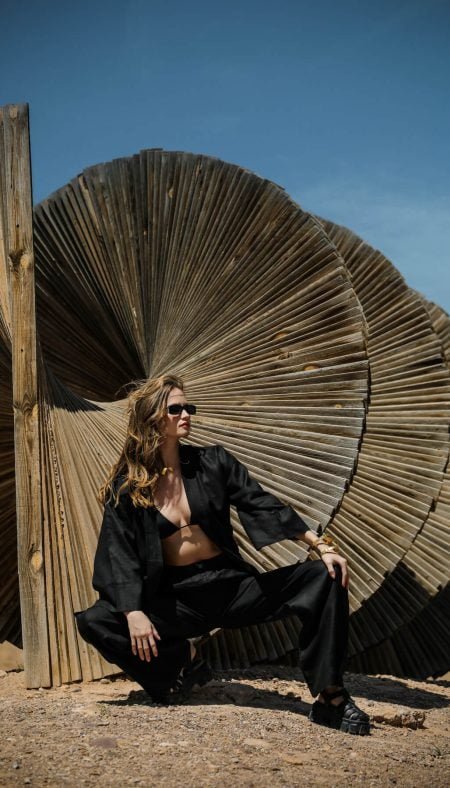 200.00 $Feel the coolness and comfort of Marrakech’s hot days with the comfortable and stylish piece from the ELA’F SS24 Soleil de Marrakech Collection, the La Pause Pants. The natural texture of 100% linen fabric and the elegance of black come together in the La Pause Pants, making it a must-have for summer.