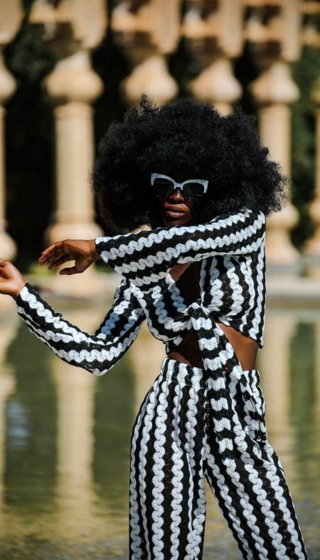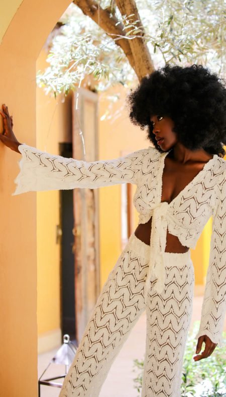 500.00 $Get both an elegant and modern look with the Namaskar Set, the eye-catching piece of the ELA’F SS24 Soleil de Marrakech Collection. The contrast of black and white colors and the craftsmanship of the knitted lace fabric will make you feel special at every step.