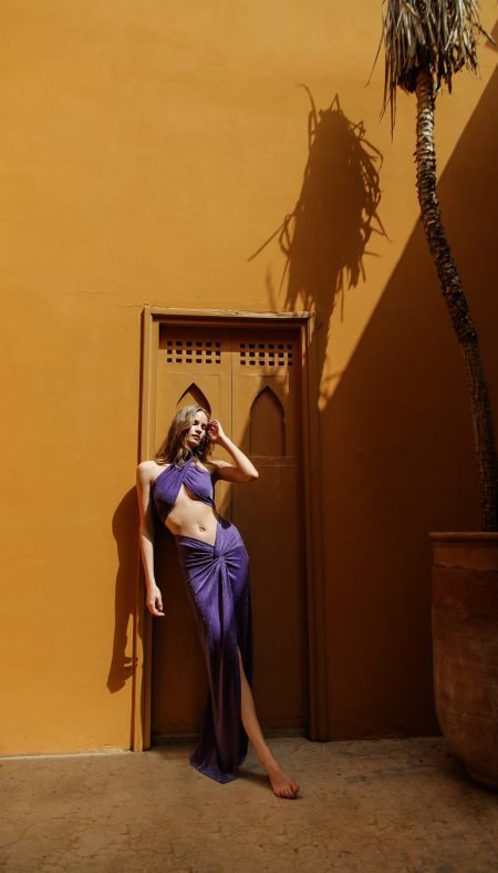 200.00 $A Mysterious Dream in the Shine of the Marrakech Sun: Step into the magical world of our SS24 Soleil de Marrakech collection with the PURPLE NO LIMIT SKIRT and chase your dreams in the mysterious atmosphere of JNANE TAMSNA. Feel the boundless freedom and mystery in this corner of paradise, blended with Meryanne Loum-Martin’s elegant interior design and Gary Martin’s calming nine-acre garden.