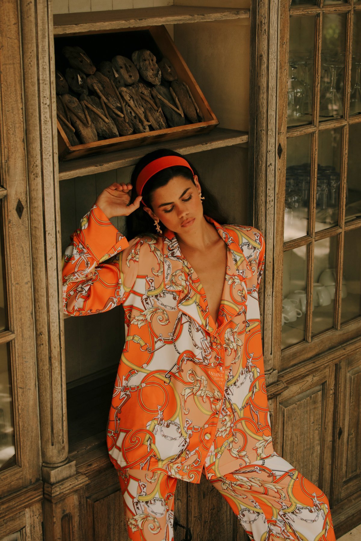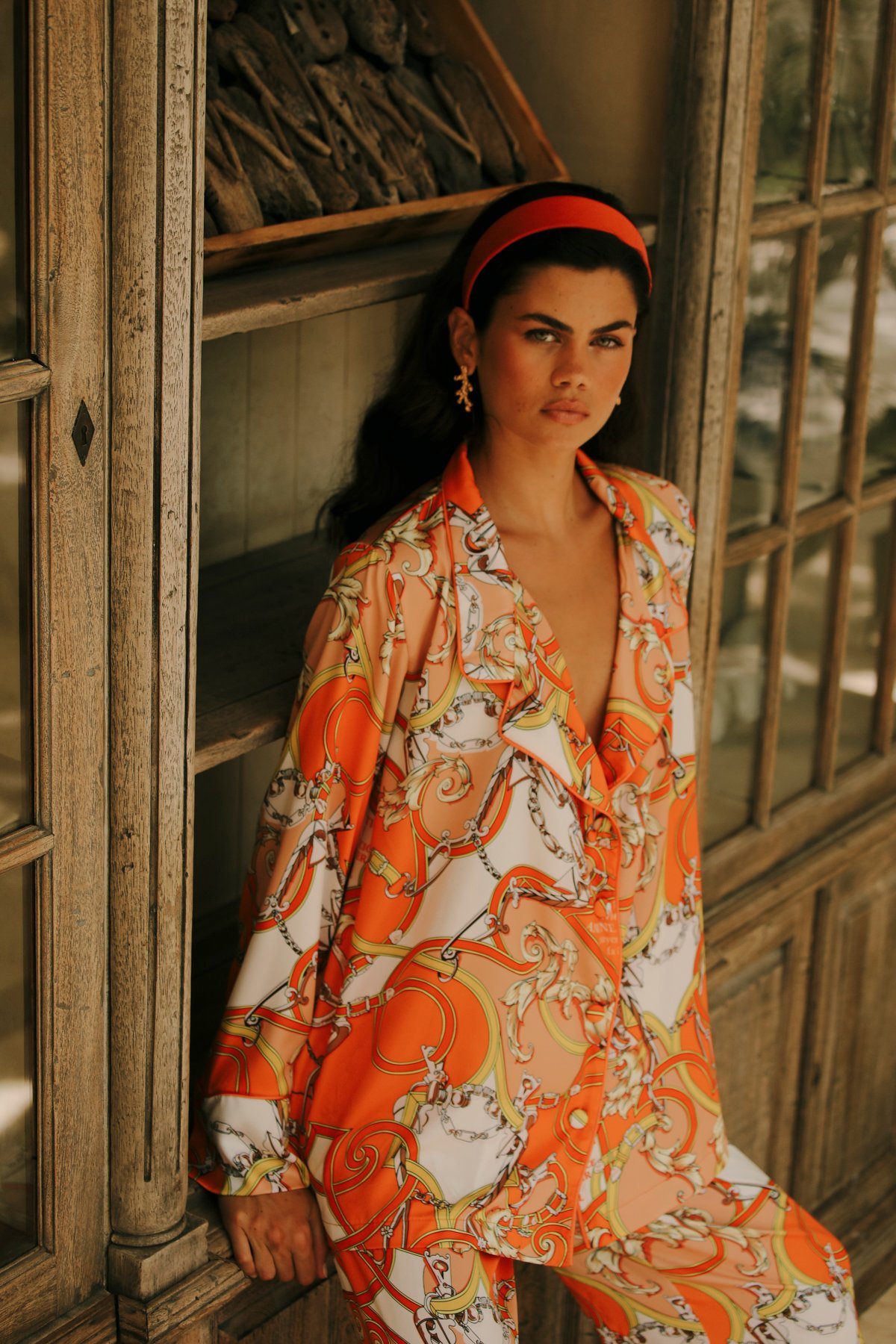 Inspired by the serene beauty of Bali, the Aurelie Orange Double-Breasted Top combines effortless elegance with a modern, refined silhouette.