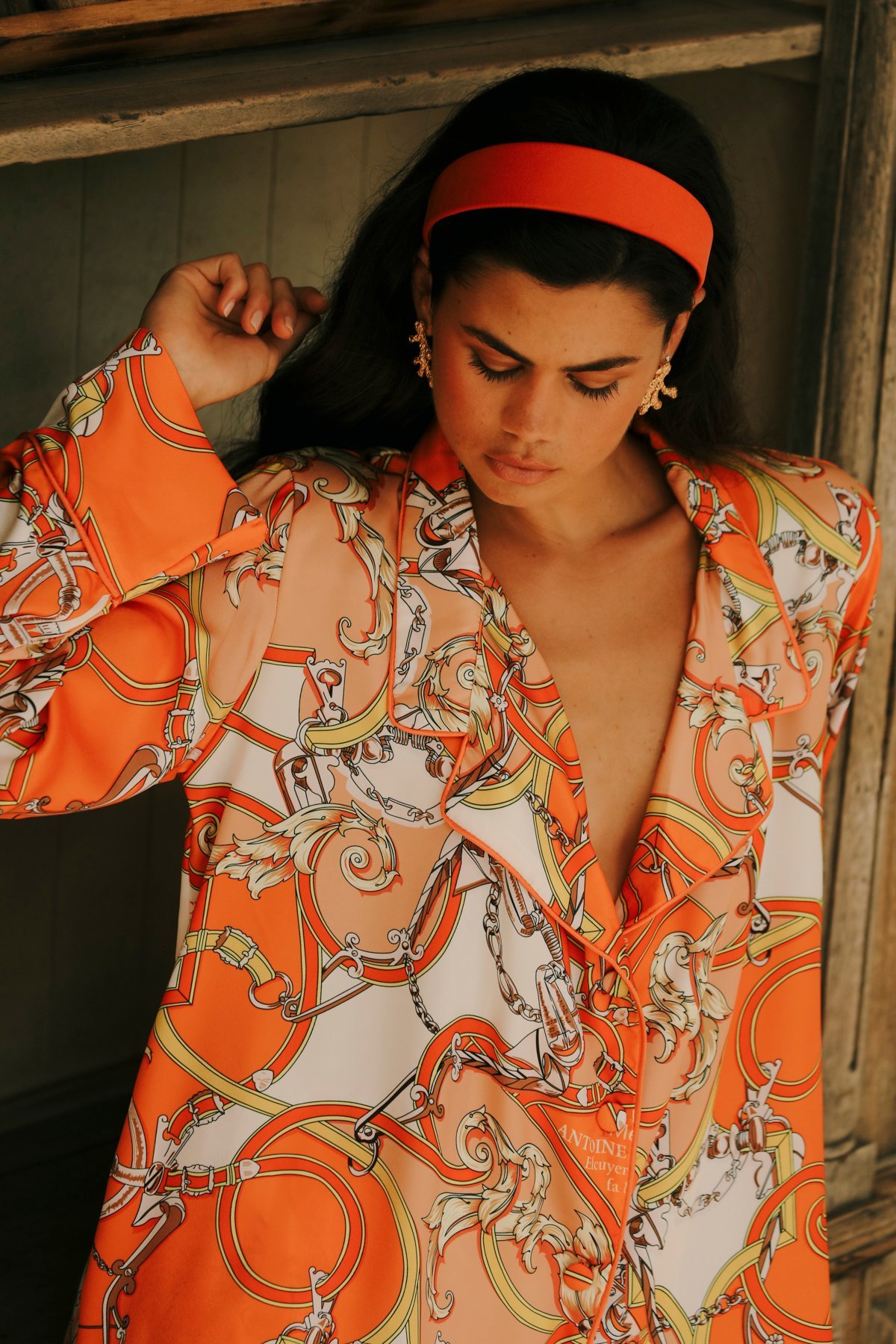 AURELIE ORANGE DOUBLE-BREASTED TOP – SILK SATIN ORANGE