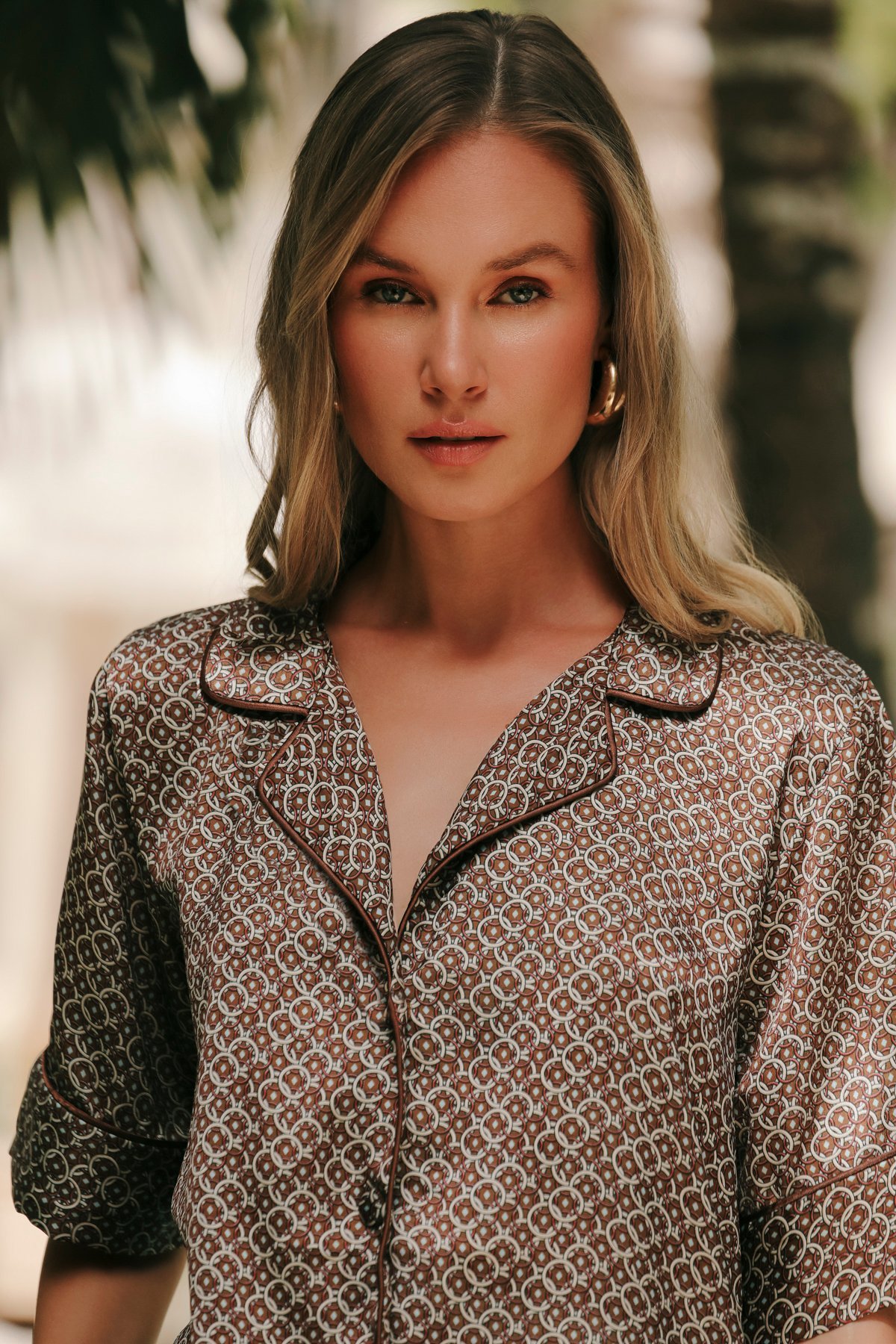 CERCLE D’OR SHORT-SLEEVE SHIRT – SILK SATIN BROWN