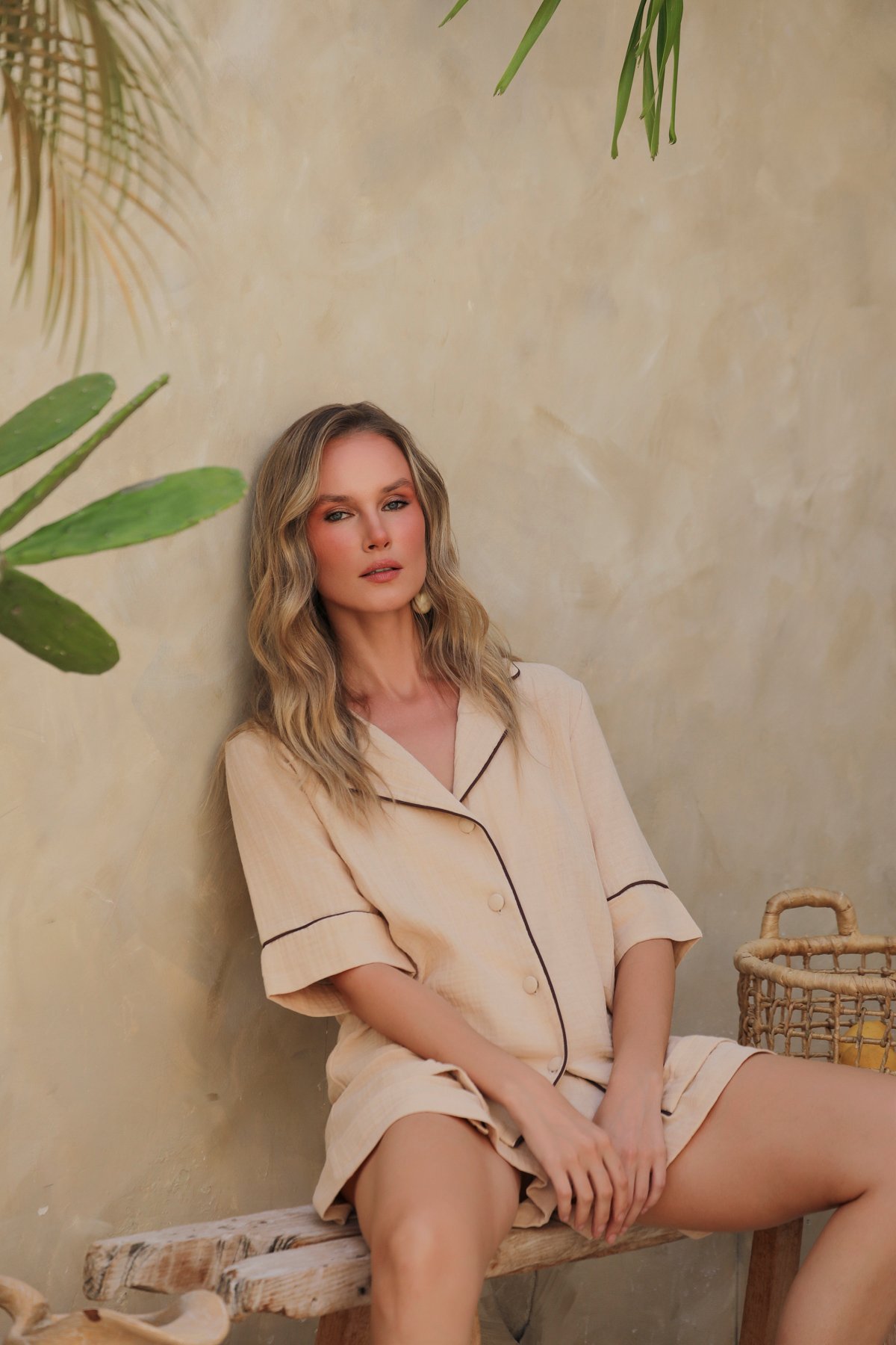 The HELEN CREME Short-Sleeve Shirt reflects pure, understated elegance inspired by Bali’s serene atmosphere.
