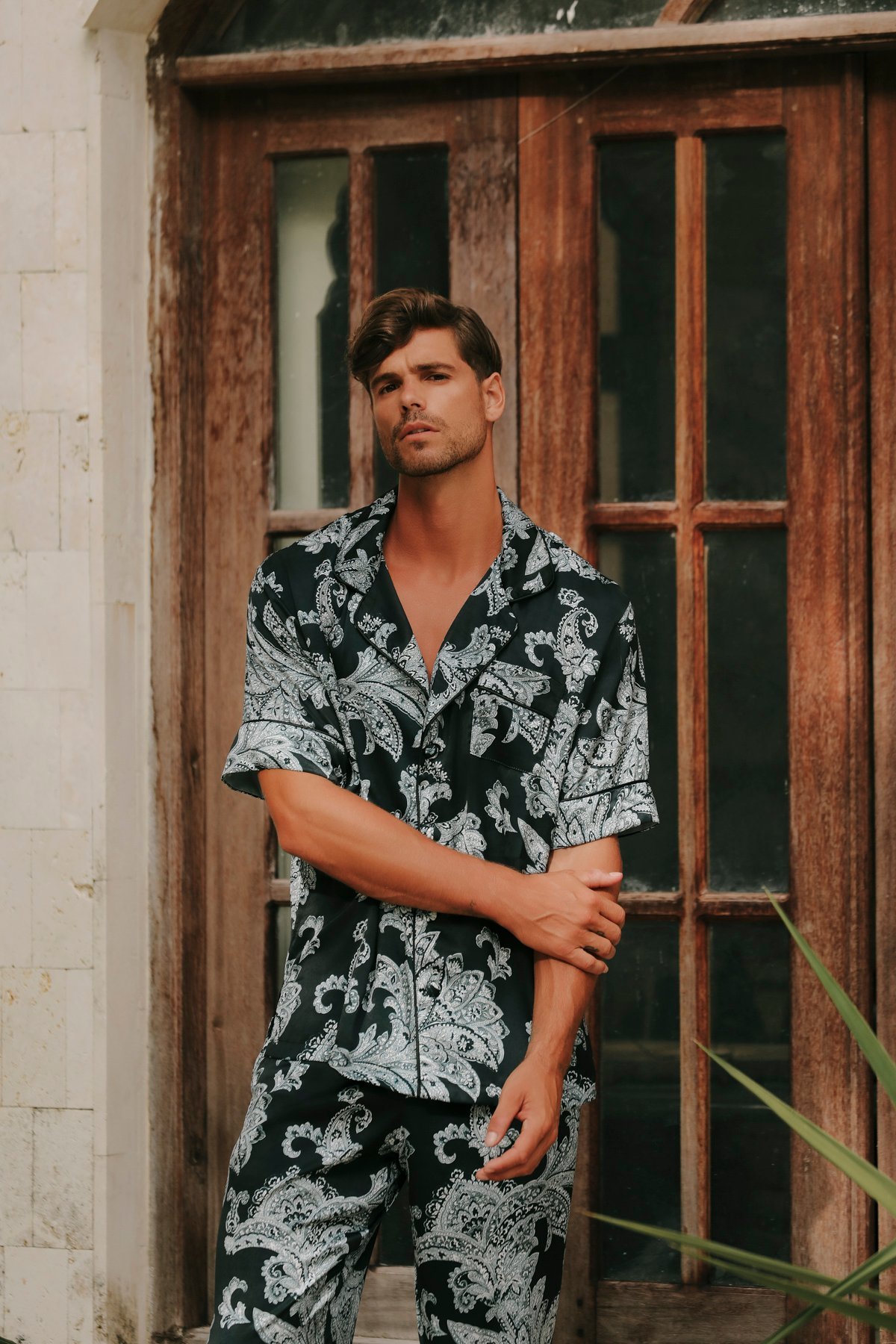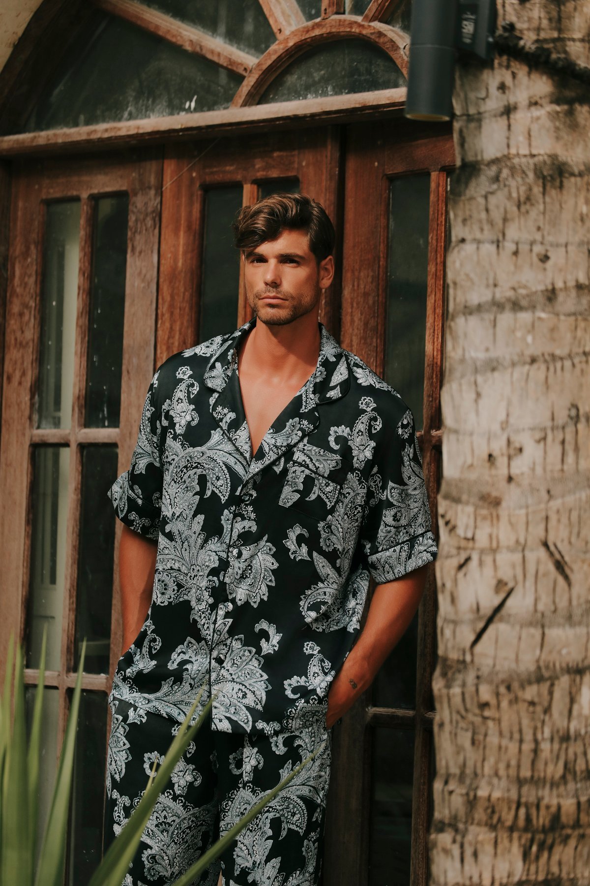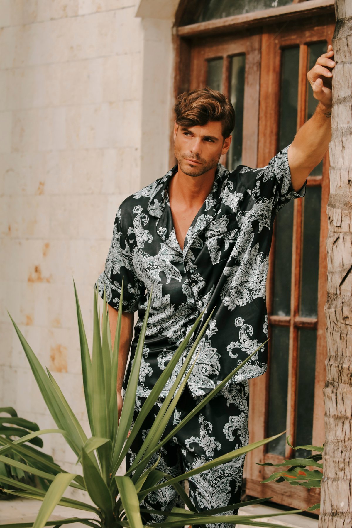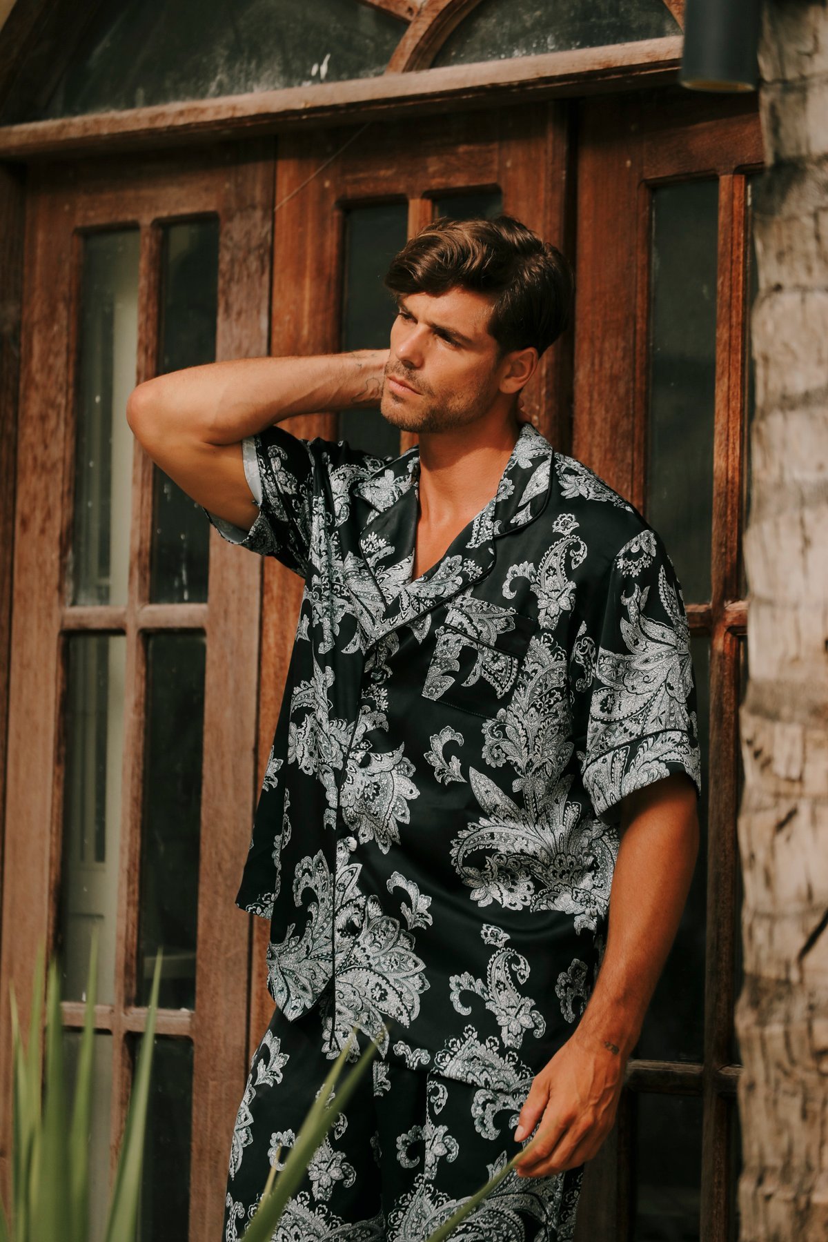 HENRI PANT SET – SILK SATIN | BLACK-GREY