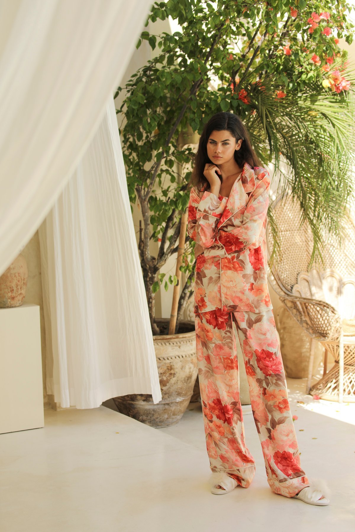 NUIT FLORALE PANT SET – SILK SATIN PASTEL