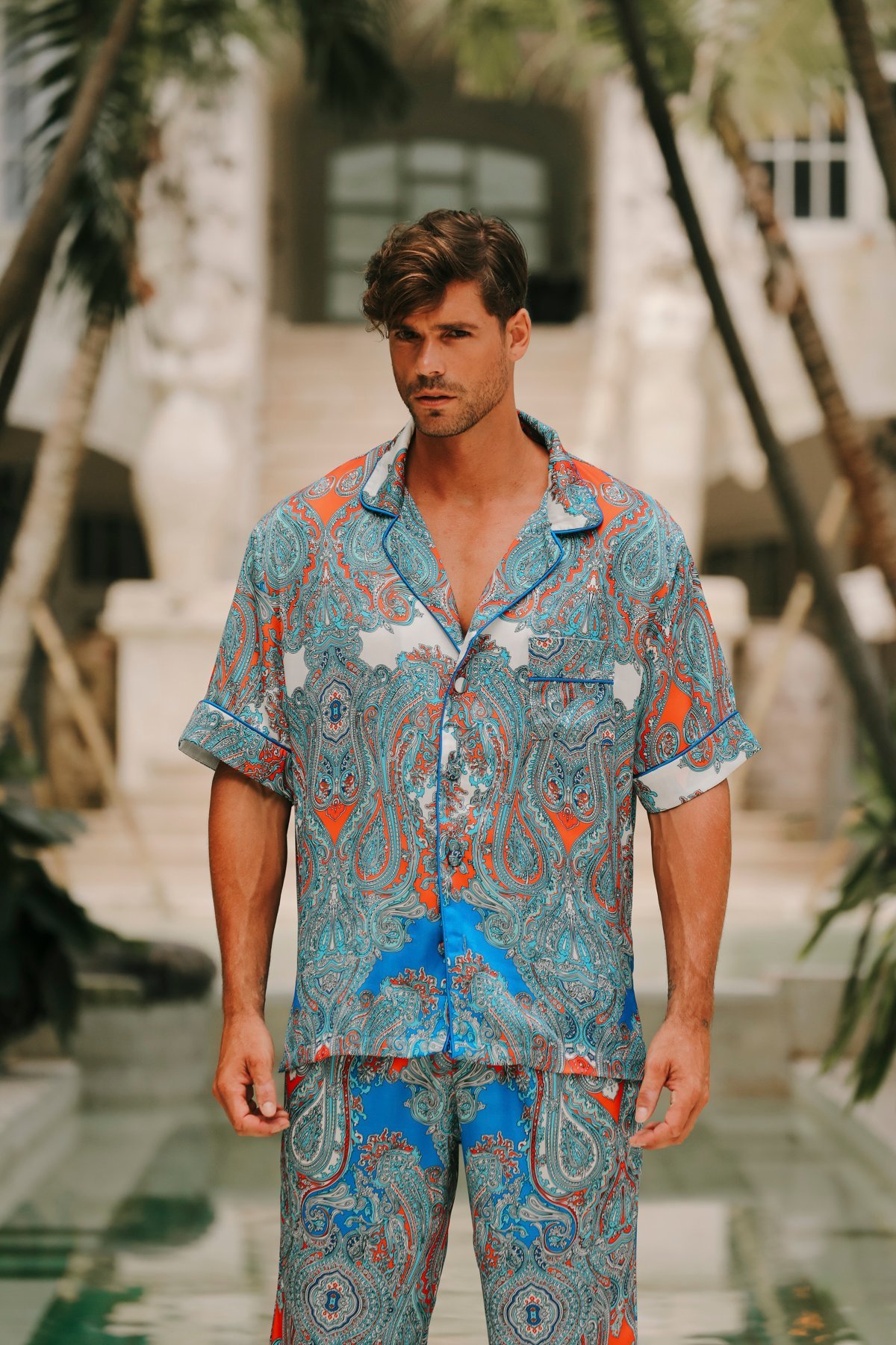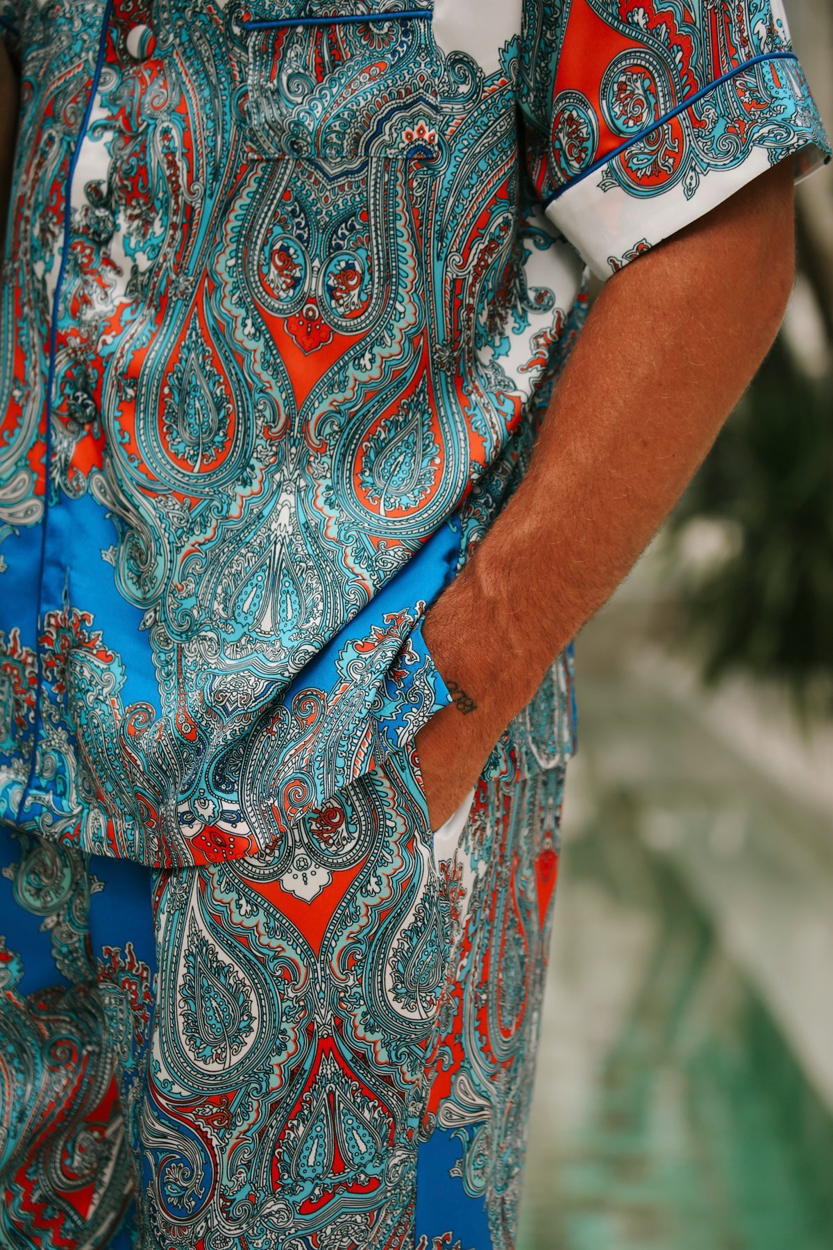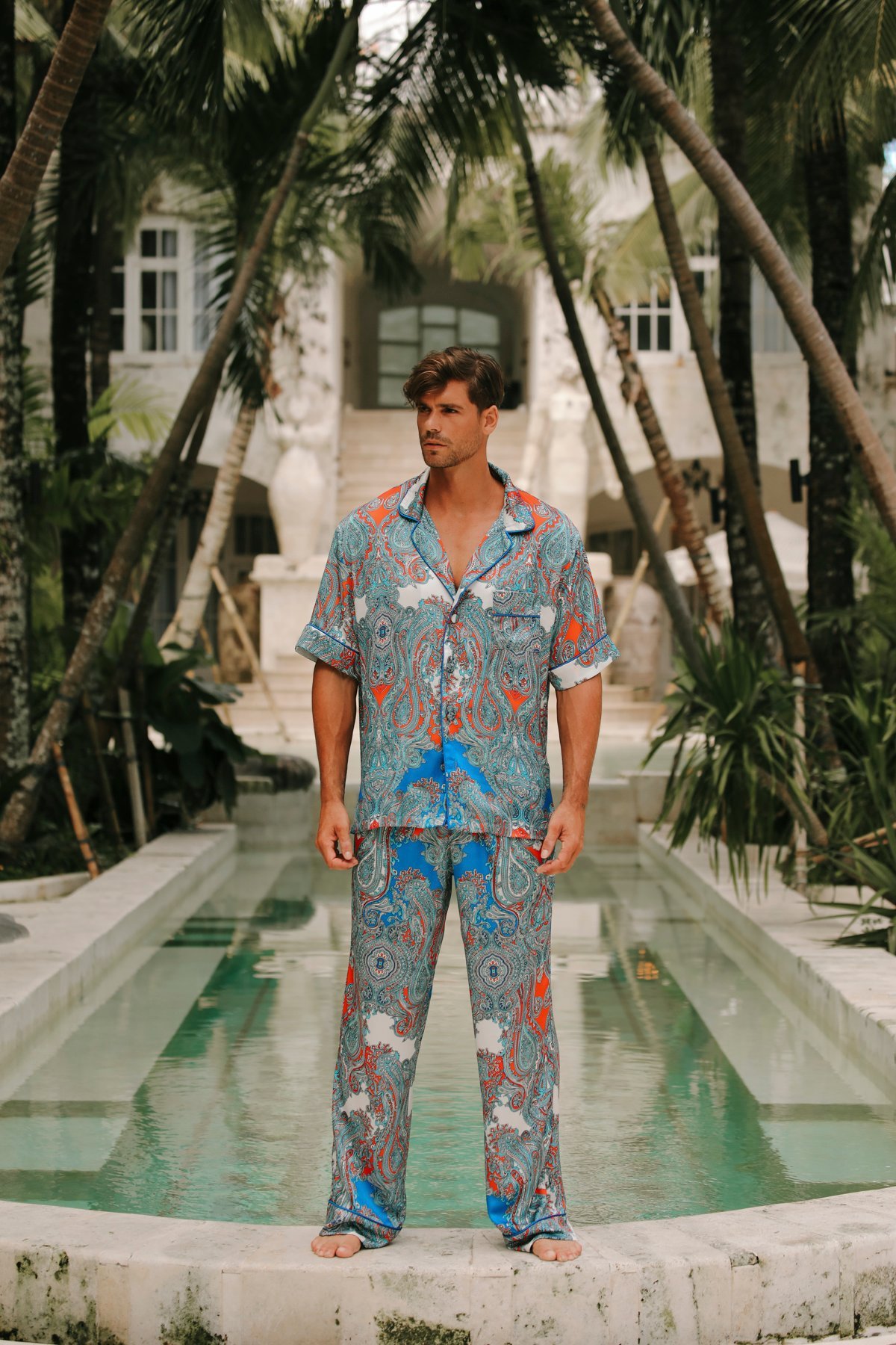VALENTIN PANT SET – SILK SATIN BLUE–RED