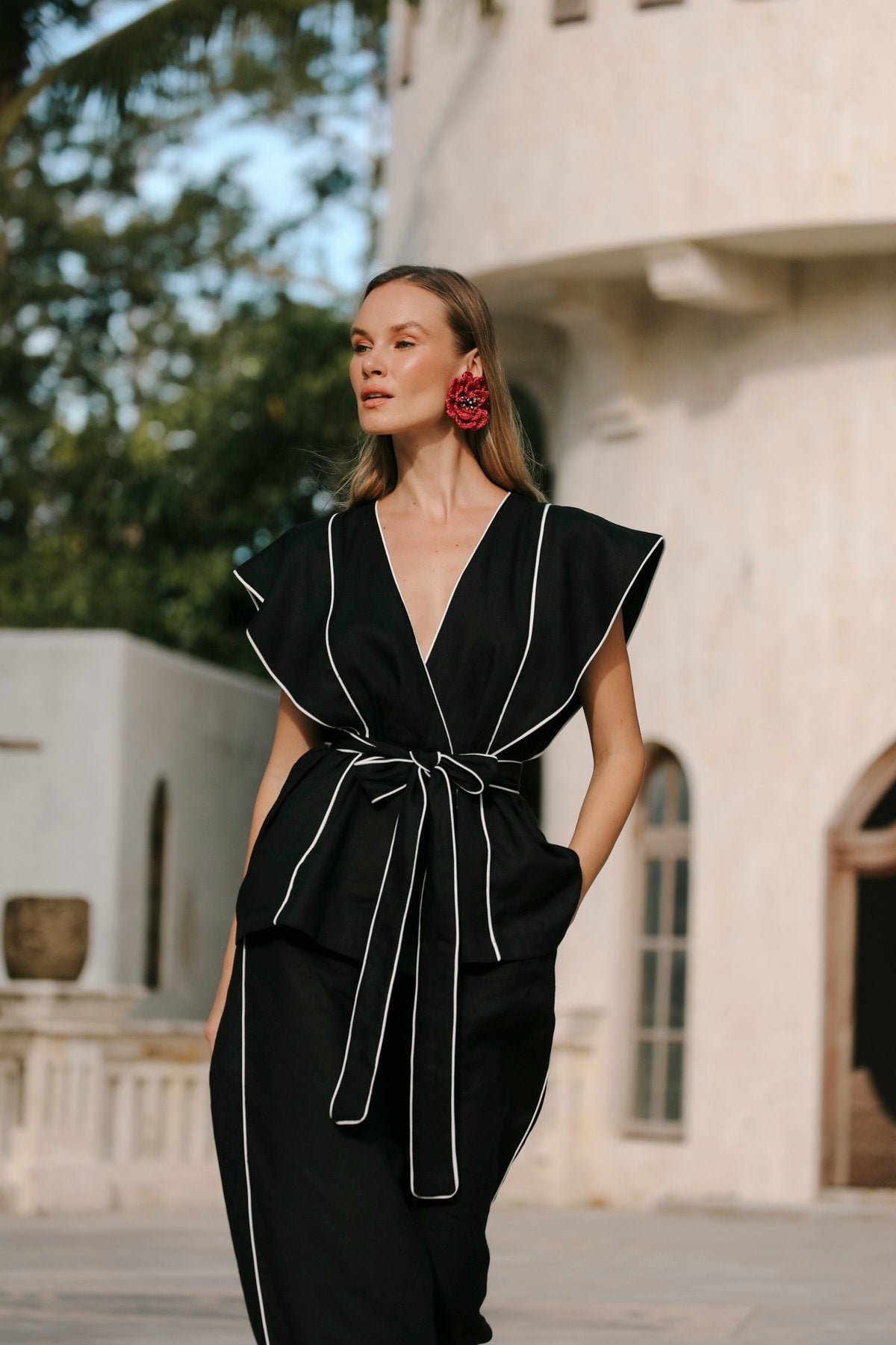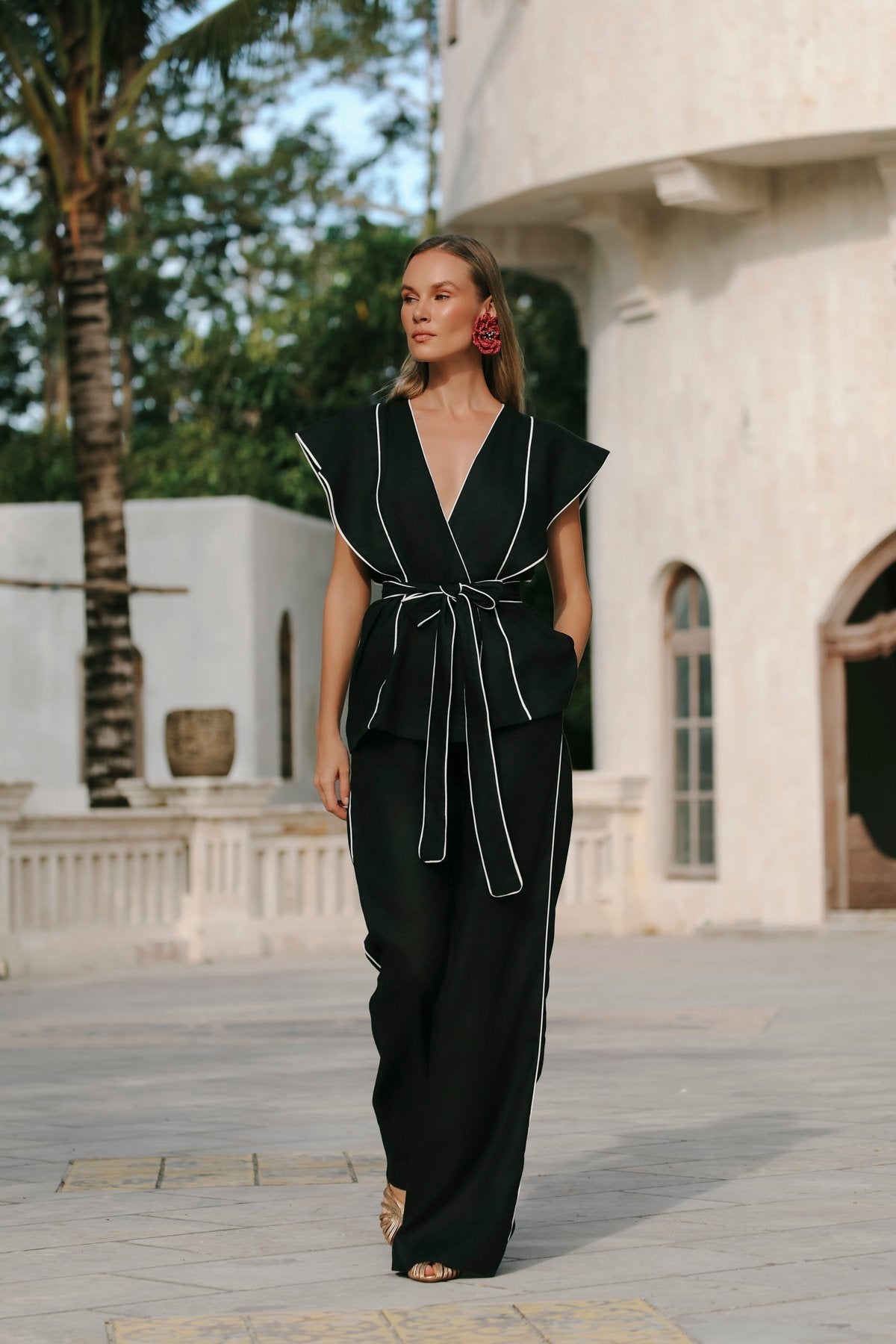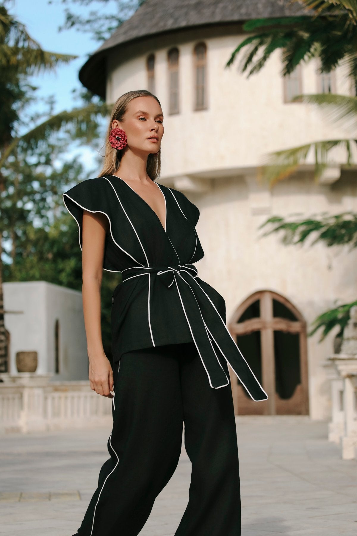Modell: Hosenanzug Farbe: SCHWARZ Material: 100 % LEINEN Fotografiert in: BALIProduktdetails: