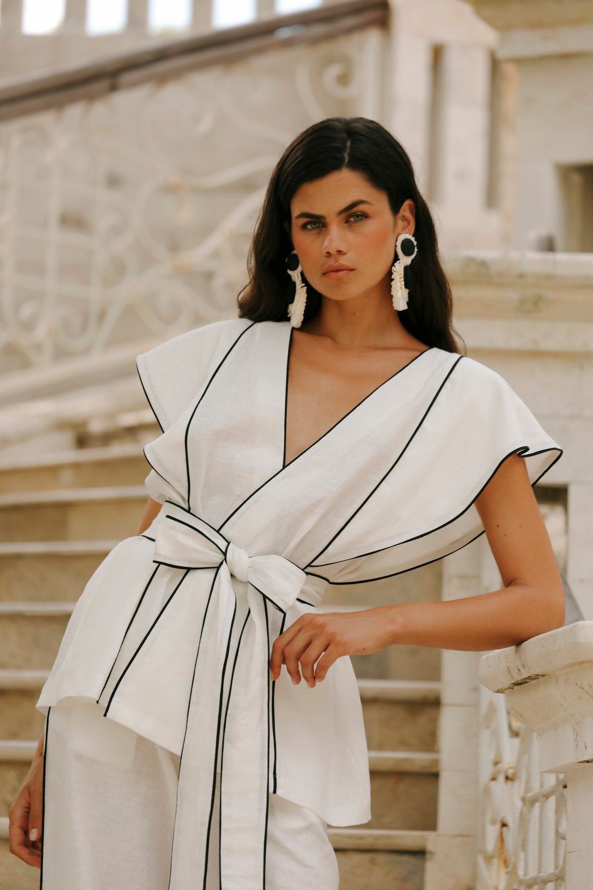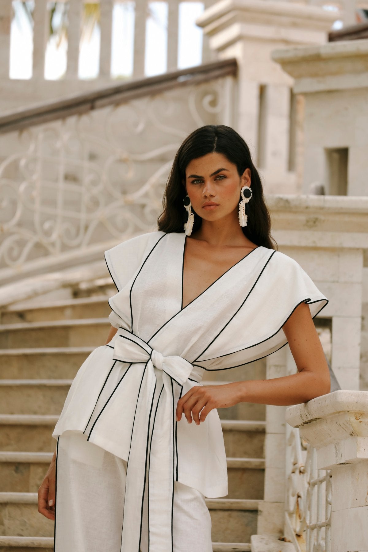 Model: Top Color: WHITE Fabric: 100% LINEN Photographing Location: BALIProduct Details: