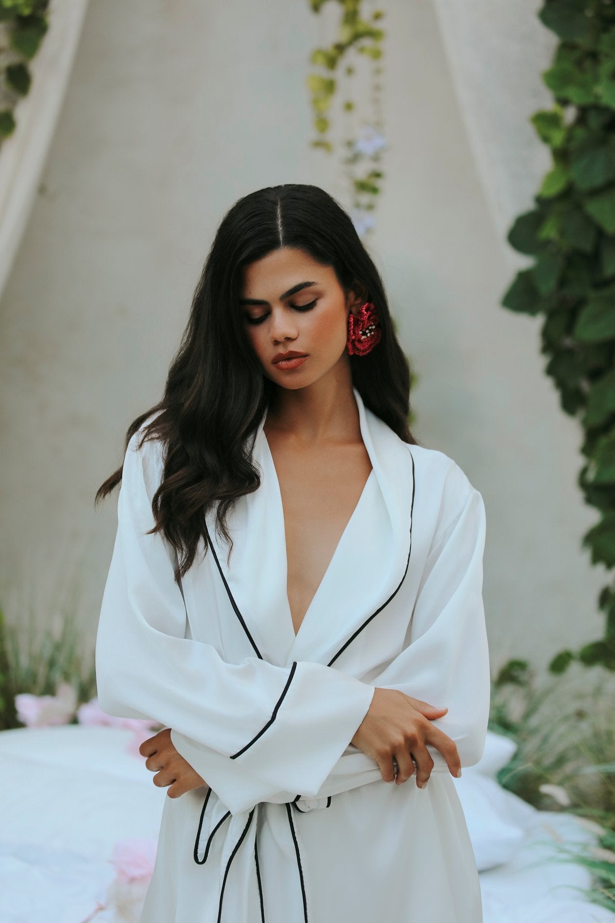 Model: Üst Renk: BEYAZ Kumaş: %100 İPEK Çekim Yeri: BALİÜrün Detayları: