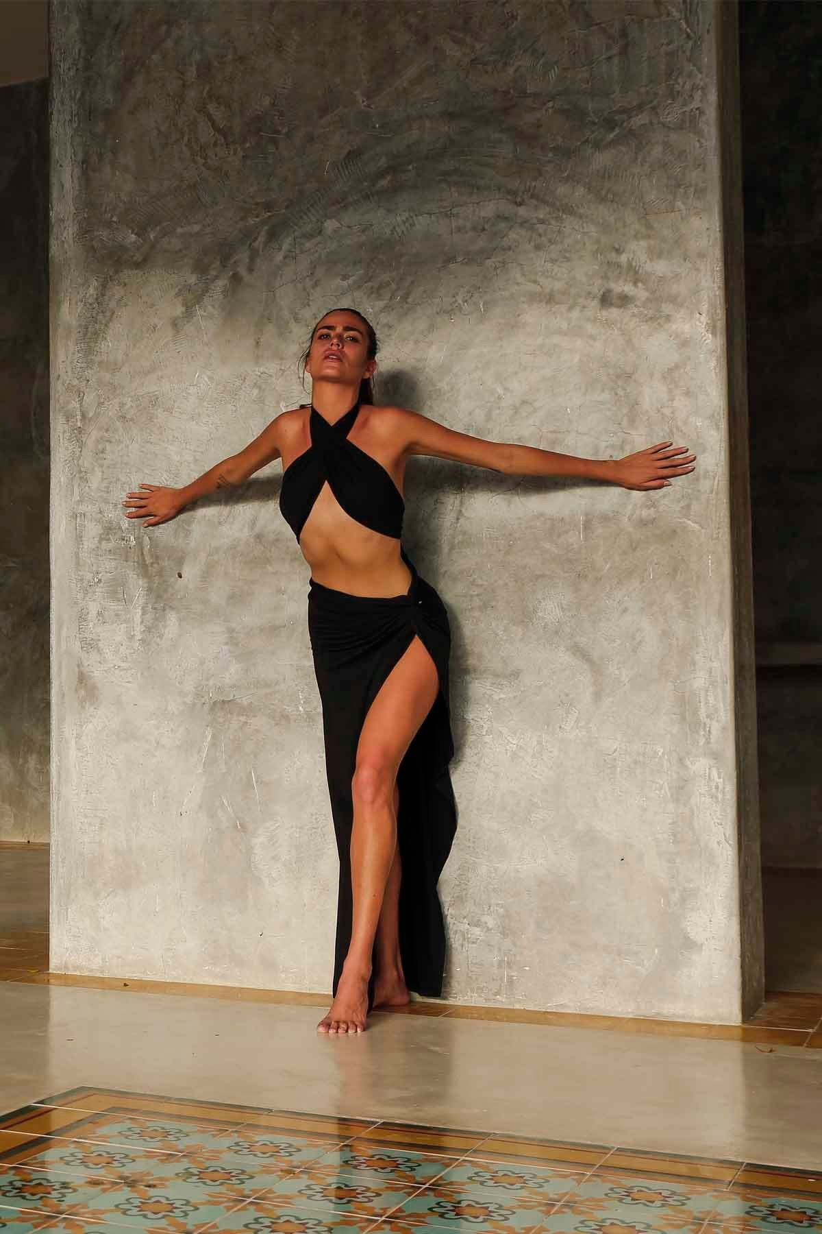 ÜRÜN ÖZELLİKLERİ: Siyah,etek şal takım Modelin ölçüsü : Boy :1.80 Göğüs:84 Bel:62 Basen:92 KUMAŞ: Pamuk jarse